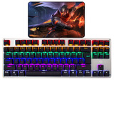 【到付京东配送】惠普hp游戏机械键盘金属发光青轴电脑有线无冲104键网咖lolcf专用键盘 混光白金色